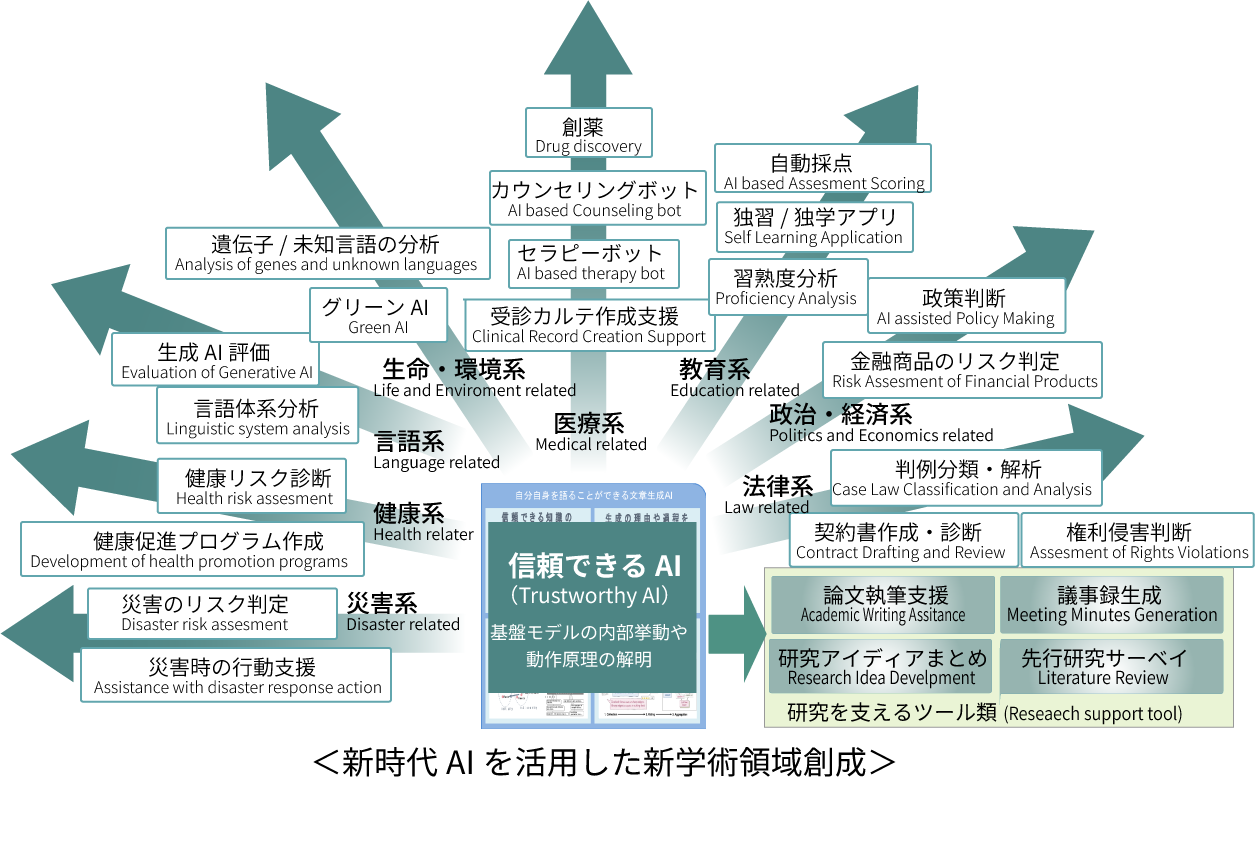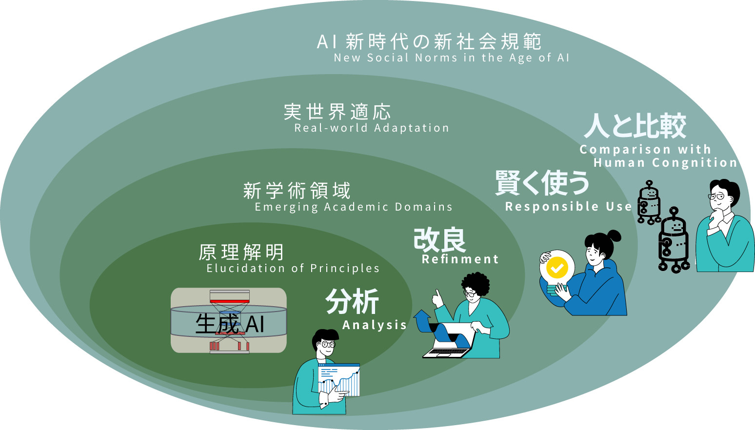 By establishing this center and combining the research capabilities of these researchers, we will work to elucidate the theory and principles of advanced AI, including generative AI, and to realize reliable AI. At the same time, we will strengthen and promote AI-driven research and AI alignment/safety research in each specialized area based on the results of advanced AI research. Furthermore, as a world-class research center that plays these roles, we will work on social implementation and human resource development of various specialized research that creates new value by applying AI, in order to realize a human-centered society that coexists with AI while balancing development and control against social changes on a global scale. The above activities will also be conducted in collaboration with the research and educational activities of the centers that make up the Organization for Innovations in Data Synergy.